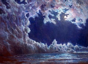 Overhead a torrent of clouds crashed against a full moon, sometimes swallowing it whole, then washing away streaming moonlight. All around me the night raged while the anchor held tight, and I held tight, the terror and exhilaration pumping through my blood and brain. The wild urge to let go and be carried away by the night was fierce. Later I tried to capture what it felt like. Here’s what I wrote: