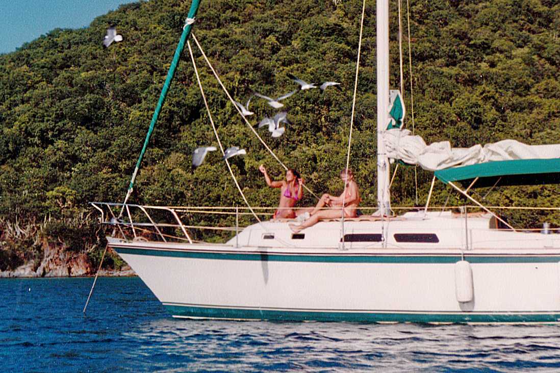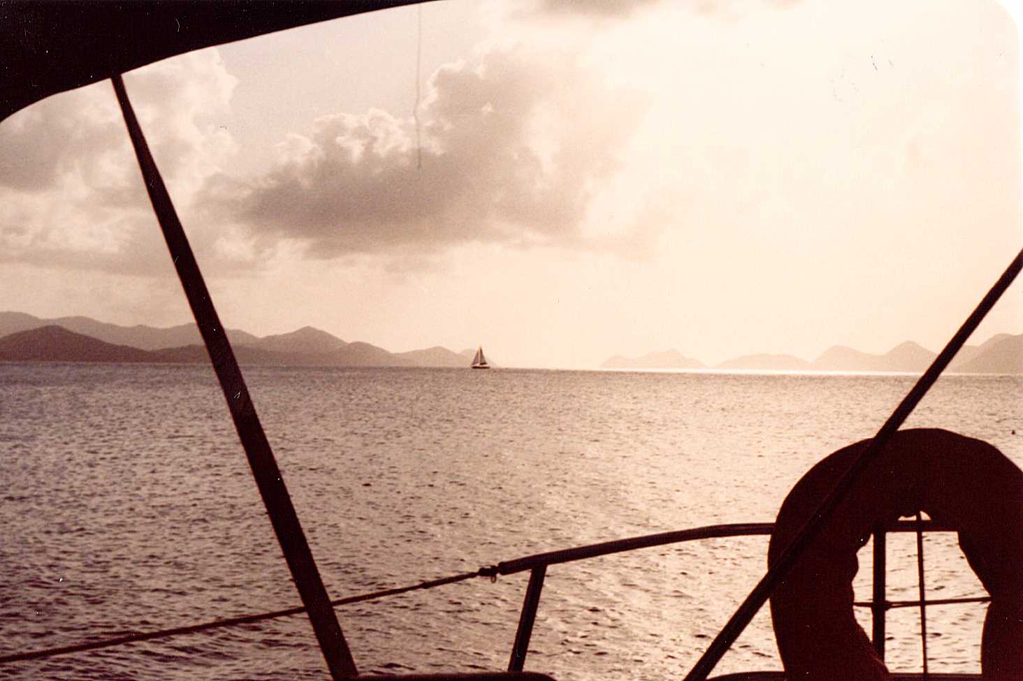 It is a rare occurrence, these last nine days in the British Virgin Islands—a trip that surpasses even our inflated fantasies of it. The best part is the naturalness of it all: the rising to a shared breakfast beneath the early morning sky, the daily scrubbing of decks, dishes and laundry, then festooning the life-lines with drying clothes; the fascination of snorkeling and sensuousness of sailing, when the sun and rhythmic seas soothe the soul even while vigorous winds and drifting vistas stimulate the mind.