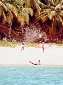 We circle past beds of plump brain coral and wander through the lavender gardens of lacy fan coral where fat butter-and-black striped fish seem to hover like bees. Swimming past the rocky point, the sea becomes so deep that we seem to be tottering on the brink of some dark, fathomless cavern. We dive down into these cooler waters and are suddenly swallowed by thousands of tiny silvery-quick fish. Always, lying just at the edge of our vision, wait the pug-jawed barracuda, like wary watch-dogs. We surface on the far side of the island and sun ourselves in a quiet, sandy cove before hiking back across the island through an intricate maze of sea-grape, palms and cacti, then swimming out to our boat.