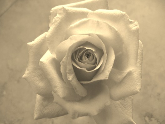 The following seems more serene, mature, even though it is the same rose against the same sky, but the light is different,  There’s an intensity here, a romantic allure.  I’m thinking candlelit dinner, silk stockings, love letters strewn on a bed.