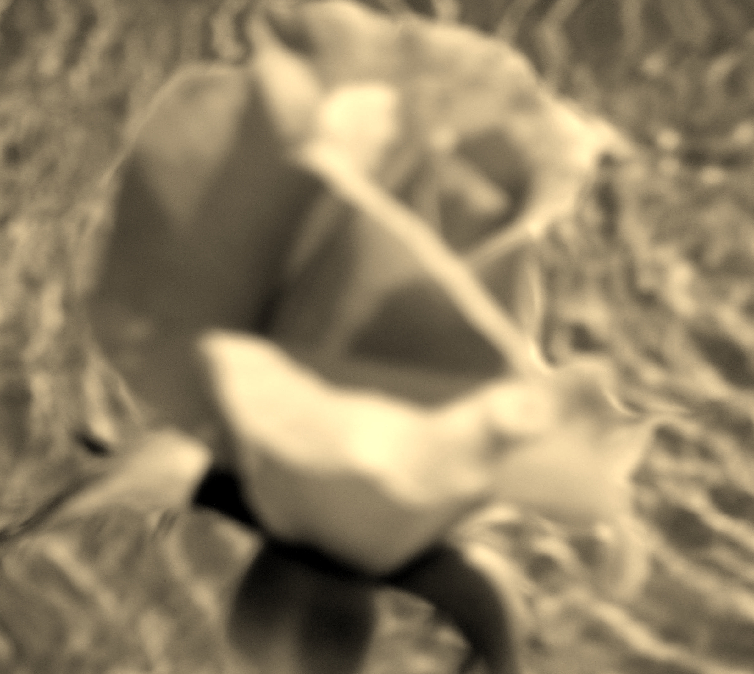 There’s a tropical feel here.  It reminds me of a conch shell I have sitting near my bath, the deep rose at the center of its hollow, the broad lip curling outward turning shades of gold, the whole sculpture a study of pink and gold, of curls and whorls and crowns.  The smooth inner lips reflecting the light, the rough and rugged shell absorbing it.
