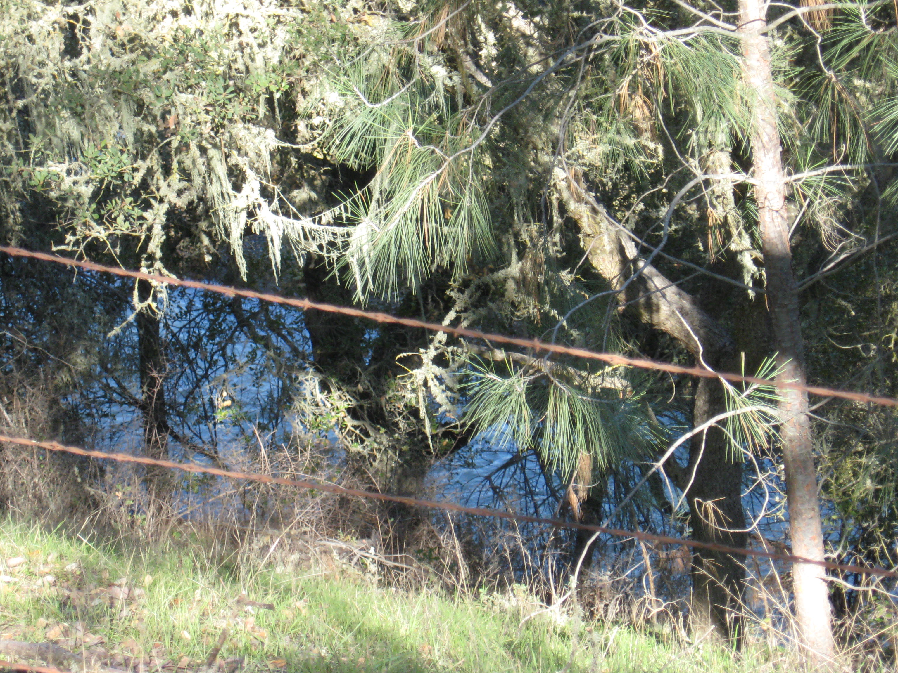 Soon enough we catch glimpses of the river far below the meadow. Here a ribbon of blue shows beneath a fringe of pine and oak branches.