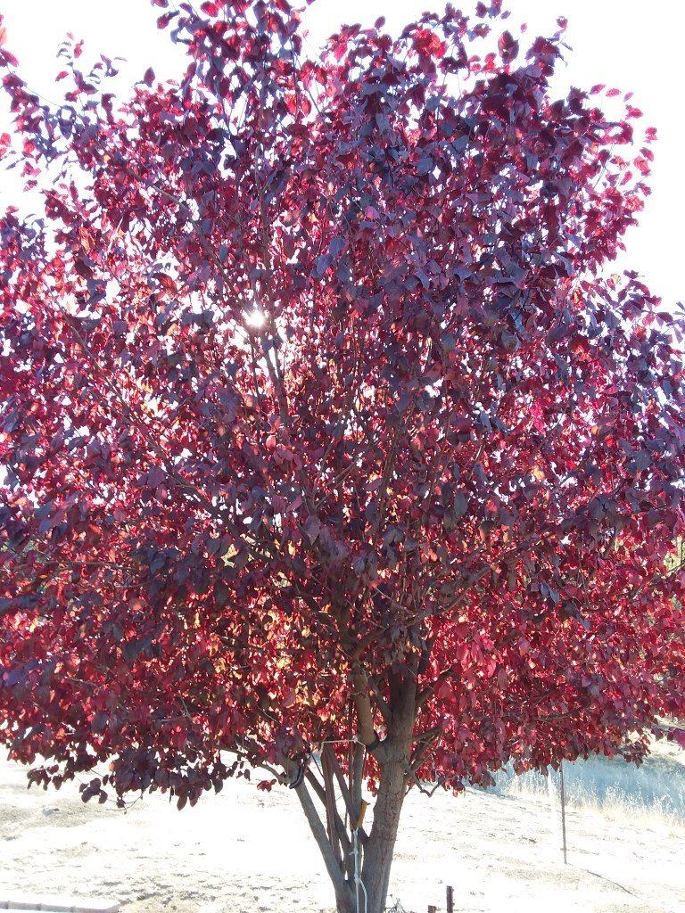 Home at last, I end this journey where I began, with this gorgeous red plum tree the marks one corner of our property.