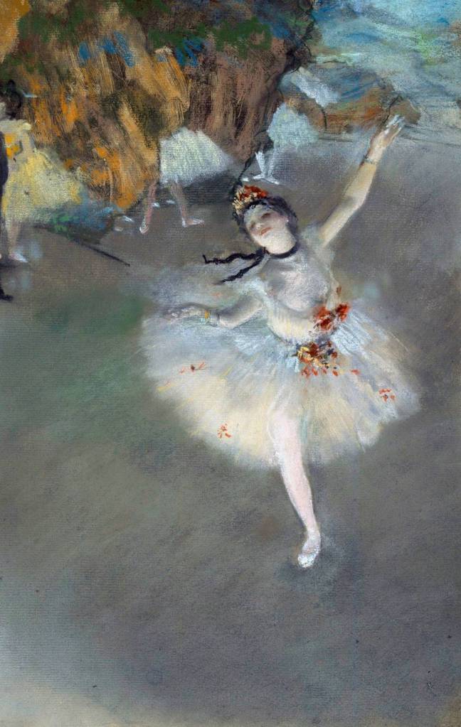 on ecstatic toes, arms flung wide,