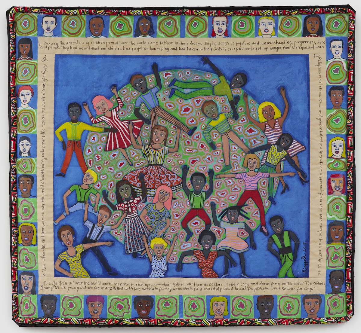 The richness of Faith Ringgold’s textured artwork dazzles me. She had been ignore for so long in the artworld, but at the age of 91 she is being celebrated for the truly amazing and influential artist she always was and a lifetime of work to prove it. Much of her earlier work was dark, documenting dark times and political struggle. She was ever an activist and continues to be. But so much of her work expresses a joyful celebration of life and art and story-telling. You can see more of her art and read about her life here.