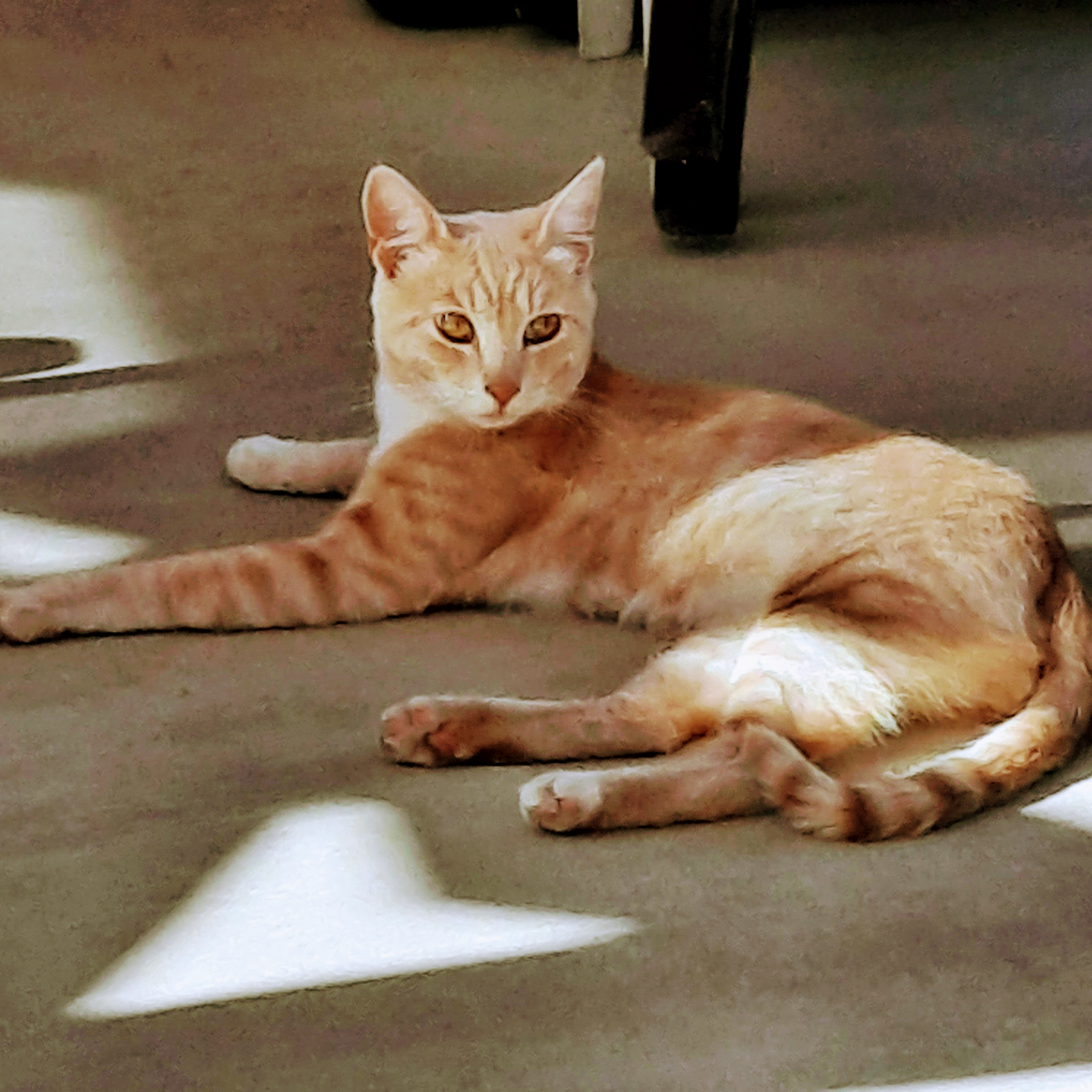 She sauntered into our yard about a month ago, this young orange tabby with a white bib. Her gaze passed over me as if she did not see me at all, as if I was part of the patio furniture where I was sitting. When our eyes finally did meet, I still saw no recognition that I was a human or animate or alive or anything at all. It was eerie—being so unseen, unrecognized—her complete disinterest in me. Even the deer and wild turkeys I meet see me, and seem wary and apprehensive when they do. They recognize me as something apart from my surroundings, something to pay attention to, keep an eye on. But not this kitty.