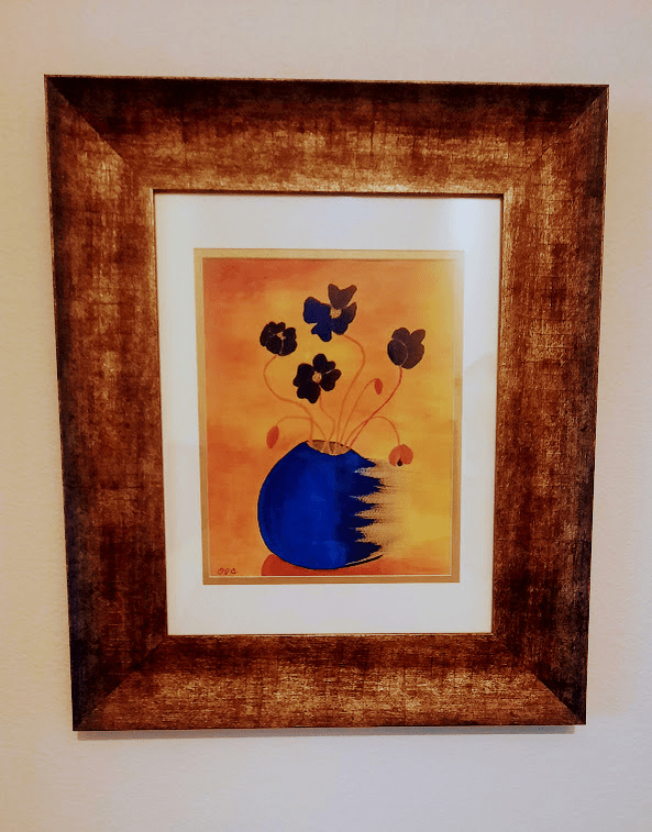 “Red Roses in a Blue Vase”, acrylic by Deborah J. Brasket