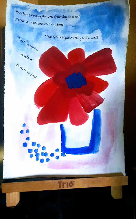 Below are a few of my feeble attempts to capture the ephemeral beauty and fragility of flowers, as well as their lush complexity, and in the last painting, the poetry as well.