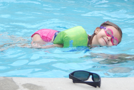When we first took our granddaughter swimming two months ago, she fell in love with the water. She was using a floatie then because she couldn’t swim. But now, two months later, she dives in head-first and swims across the pool and back all by herself (no floatie!). She does little twirling, acrobatic tricks that she makes up by herself, and she sings songs while floating on her back.