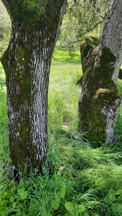 All the rain we’ve been having here in California after the long drought has stirred those life forces, painted the oak trees with mosses, covered them with the rich pollen-full blossoms, created rivers of tall grasses to wade through, stirred wild flowers into riotous bloom, created soft green beds for deer to dream in. Lush landscapes for my eye and feet to roam and know how blessed I am.